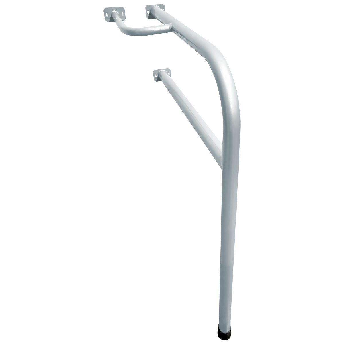 A barra de apoio foi desenvolvida com os melhores materiais do mercado, sendo fabricada em aço carbono extra resistente, já o acabamento fica por conta da pintura epóxi com tratamento antioxidante que traz uma cor mais viva para peça. Conta também com ponteiras plásticas, trazendo maior aderência, evitando que ela escorregue ou danifique seu piso.